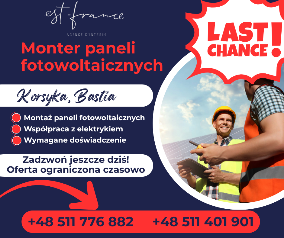 OSTATNIA SZANSA! Monter Paneli PV – Korsyka (Bastia)